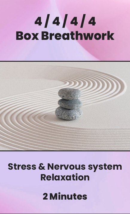 This is a 2 minuted guided audio of the 4 / 4/ 4/ 4 box breathing technique. Use it for when you need a quick de-stress or nervous system calming.